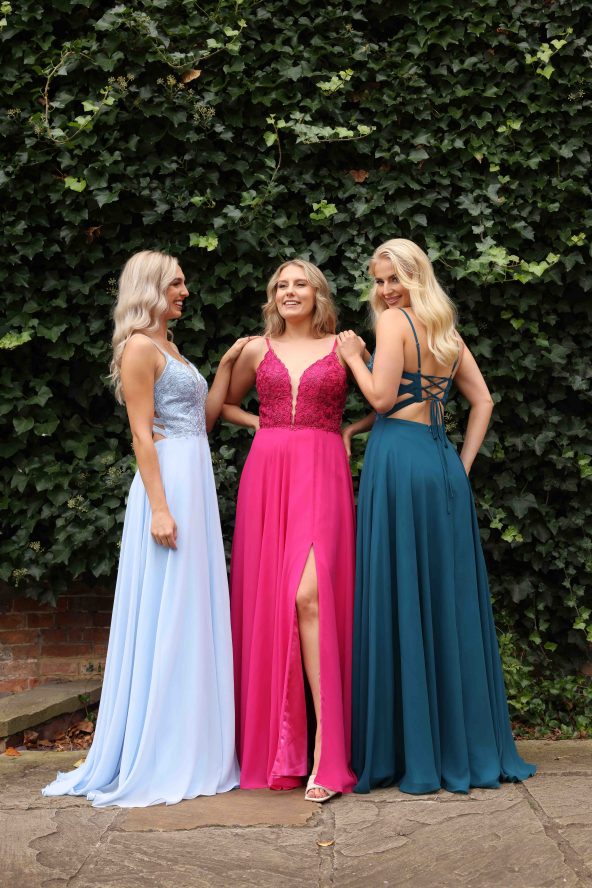 Viola is a dreamy ballgown with an off-the-shoulder sweetheart corset bodice, lace appliqué and a floaty layered tulle skirt. Shown in Cameo Cloud Pink, its lace-up back, gentle sweep train and airy movement make it a standout for prom-night photos and the dance floor alike.